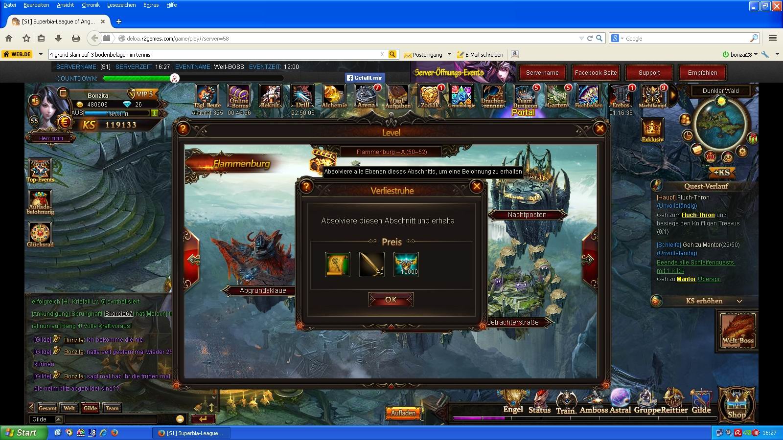 Belohnung nach Hauptquest-Ebene
