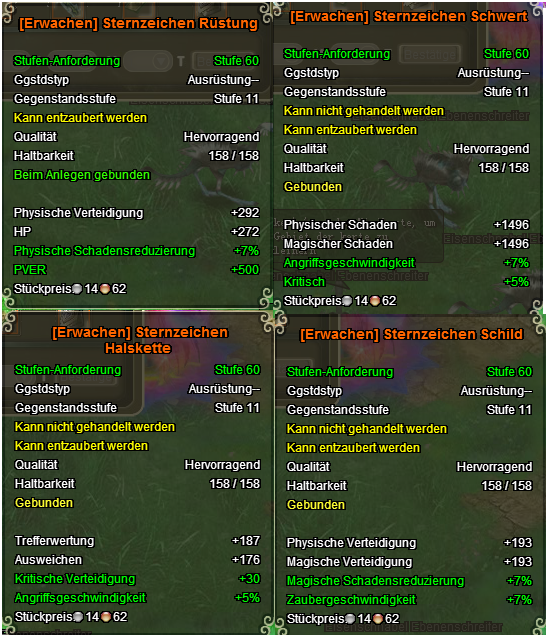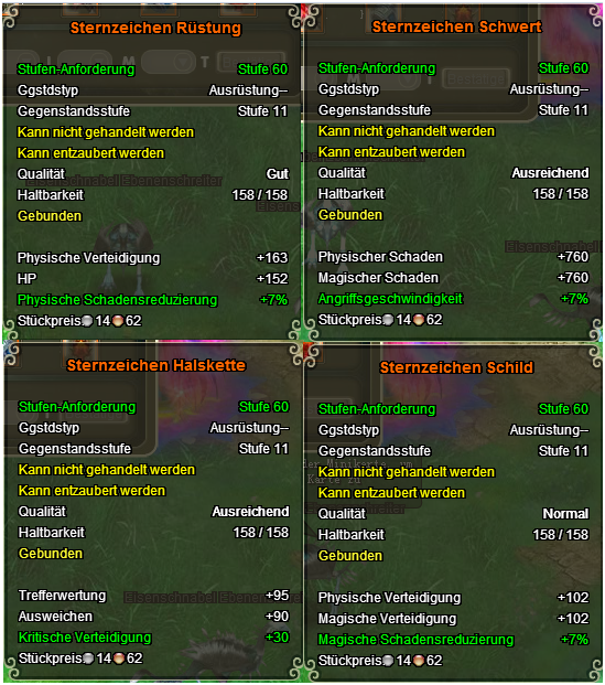 Sternzeichen Ausr?stungen sind vier neue Gegenst?nde, sie ersetzen nicht deine bereits vorhandene R?stungsgegenst?nde sondern beanspruchen vier v?llig neue Pl?tze im Sternzeichen Fenster.