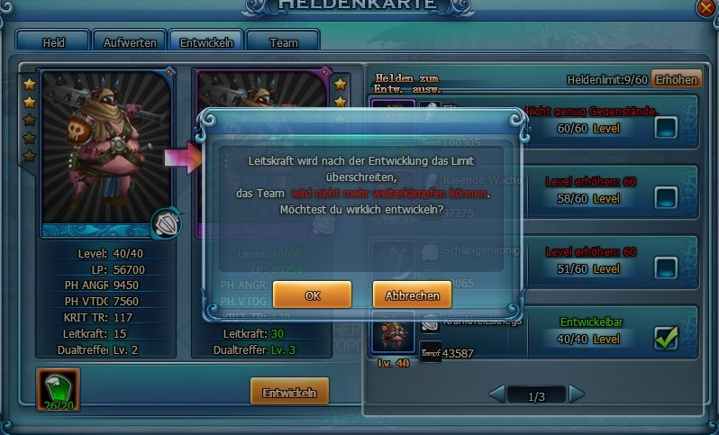 Ich stehe aktuell vor einem R?tsel und zwar wollte ich ein 4 Monster Entwickeln das ich es auf LVL 60 hochjagen kann, jedoch bekomm ich dann die meldung das er dann dem Team nicht mehr Beiwohnen kann weil ich dann eine LEITKRAFT ?berschreite!