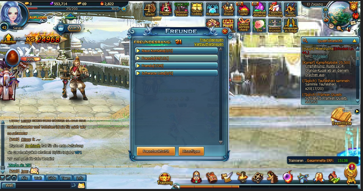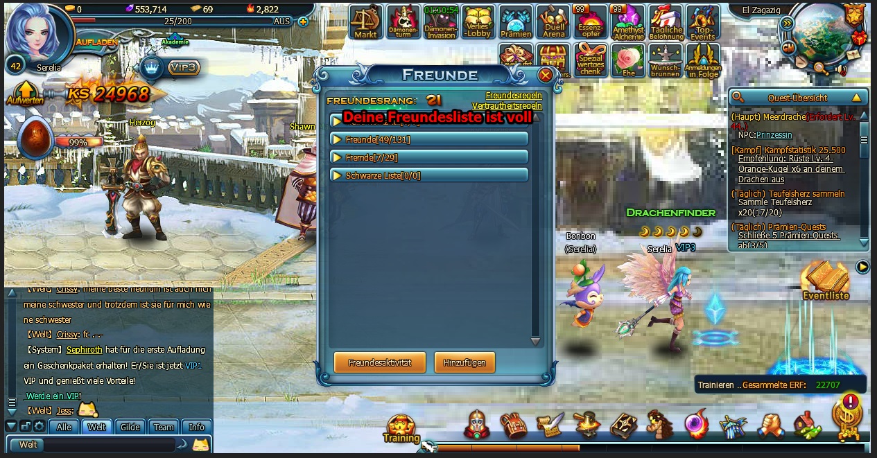 Du hast 131 Freunde zuz?glich 29 Fremde Spieler = 160 Spieler = Limit VIP3