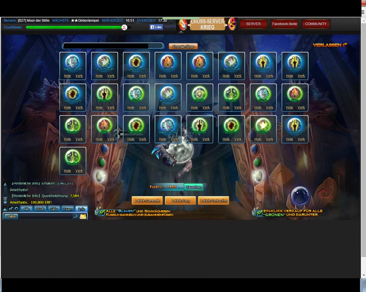 Seit vorhin aber, krieg ich vier Reihen Kugeln. Drei Komplette und hinterm Chatfenster noch eine weitere. W?re nett, wenn sich darum gek?mmert werden w?rde. Ich habe n?mlich keine Lust, die Kugeln kaufen zu m?ssen, was um einiges teurer ist. Weil das Klicken nicht mehr funktioniert.