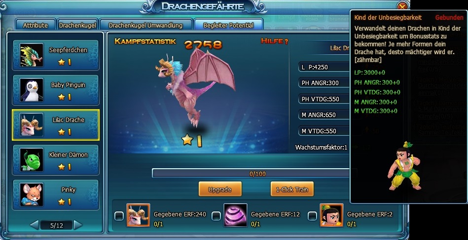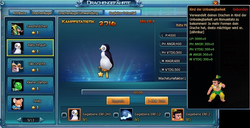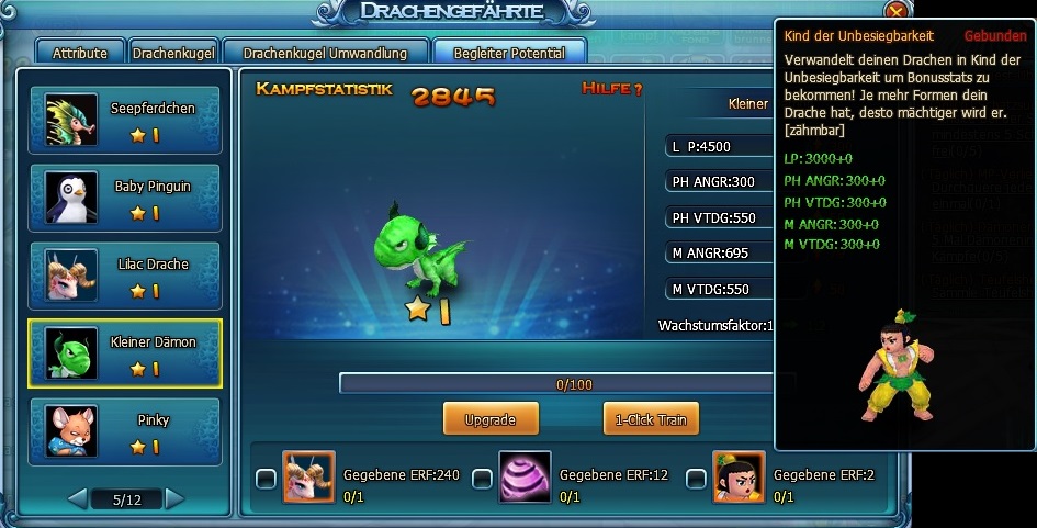 Beim Baby Pinguin, Lilac Drache und Kleiner D?mon wird als dritte Option zum Upgrade statt des Begleiter Kristalls das Kinder der Unbesiegbarkeit angeboten. Ein Upgrade durch Einsatz der Begleiter Kristalle ist nicht m?glich. Ich denke nicht, dass dies gewollt ist, kann mich aber auch irren ^^.