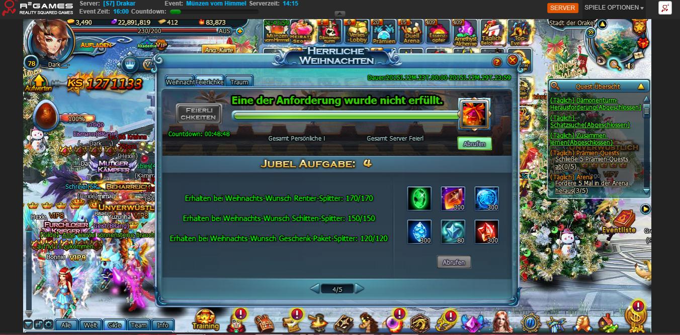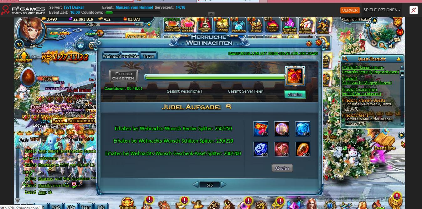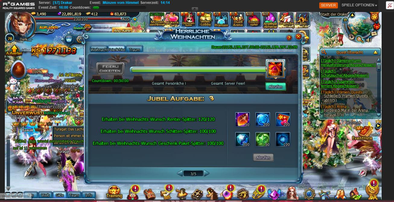 Du brauchst zus?tzlich noch Santa-Splitter. Dann kannste alle f?nf Seiten Belohnungen abholen, wenn sonst alles gr?n ist.
