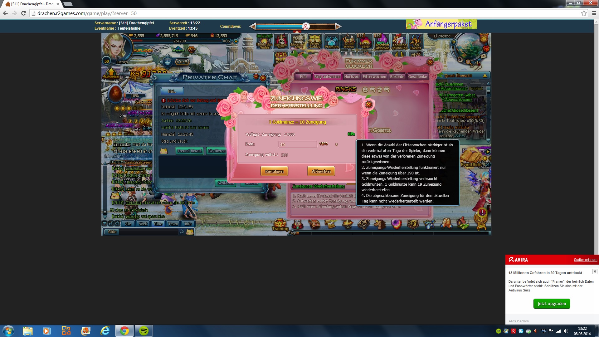 Ich wei? nicht als was ich das einstufen soll das ist mir gestern abend aufgefallen das die beischreibung bei der zuneigungswiederherstellung bei denn ringen nicht ganz stimmt weil dort steht ja 1 goldm?nzen kann 19 zuneigung wiederherstellen aber tats?chlicht wird immer nur 10 zuneigung mit einer goldm?nze wiederhergestellt was ich meine steht unter Punkt Drei