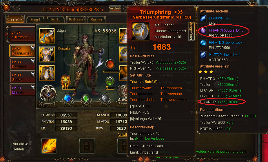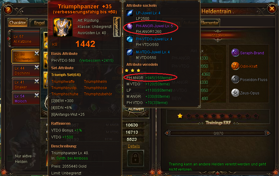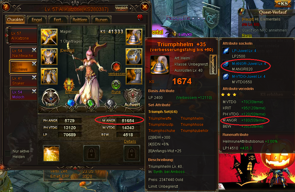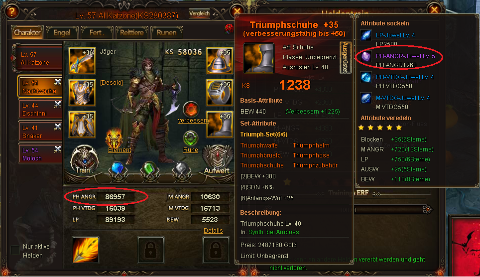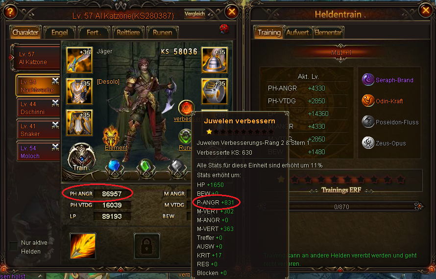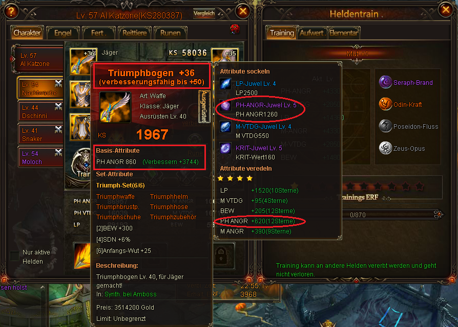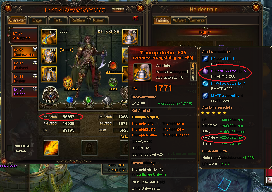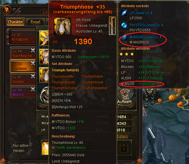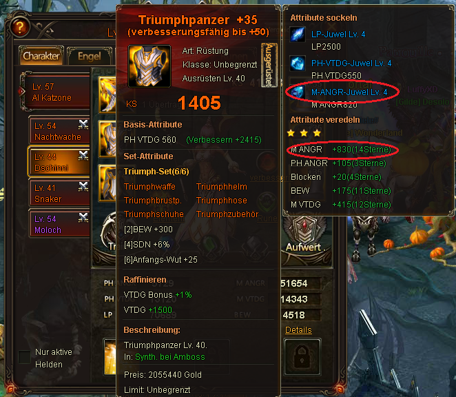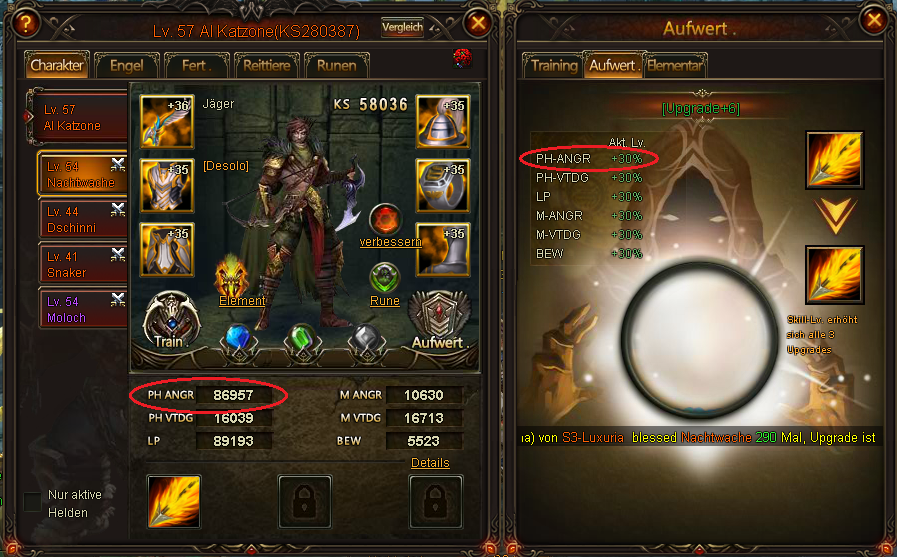 seit der Zur?cksetzung der Nutzer die versehentlich oder auch wissentlich den Bug am 26.10.2014 benutzten, hat ein Spieler extreme ANG Stats auf zwei seiner Helden bekommen. Dadurch kam es schon mehrfach zu unfairen Situationen, die andere Top-Spieler stark benachteiligten. Der Spieler hatte angegeben, dass er sich selbst bereits beim Support bzw G.M dies bez?glich gemeldet habe. Da aber bis heute keine Reaktion darauf kam und der Bug immer gr??ere Gewichtung bekommt, habe ich mehrere Screenshots gemacht, um zu erl?utern, warum es unm?glich ist, dass der Spieler so extreme Werte hat. Selbst der beste Spieler auf dem Server hat nicht mal mit seinem Main Char so starke ANG-Werte.