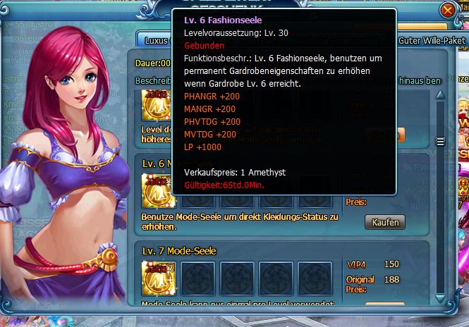 Hallo, ich habe eben das Seelen lvl 6 gekauft und kann es nicht nutzen! Mein Kleiderschrank lvl ist 6
