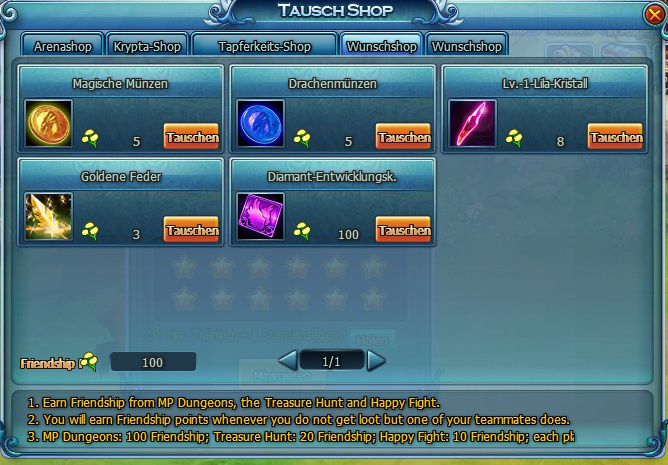 seit heut kann man beim total uneigenn?tzigem Helfen ja Friendship Punkte sammeln, die man dann im Wunschshop eintauschen kann. In der Erkl?rung ist allerdings ein Punkt der mir etwas Spanisch vorkommt. Wie im Screen zu sehen steht da, dass man die Punkte im MP Verlies, im Spa?kampf und in der Schatzsuche bekommt. Man bekommt sie sobald der einer loot bekommt und der/die anderen nicht. In der Schatzsuche verst??t das doch aber definitv gegen die Regeln oder verstehe ich den Punkt so falsch?