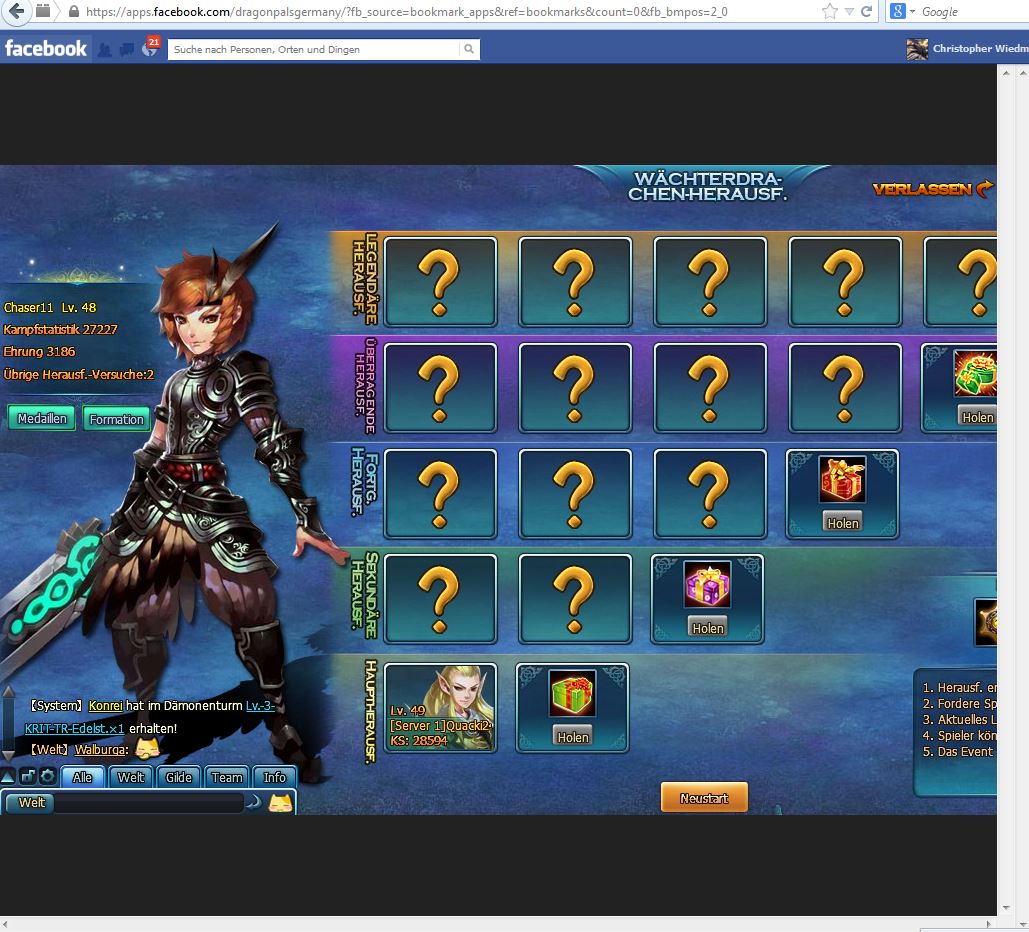und gehe z.b. zu den W?chterdrachen, sehe ich nur folgendes: