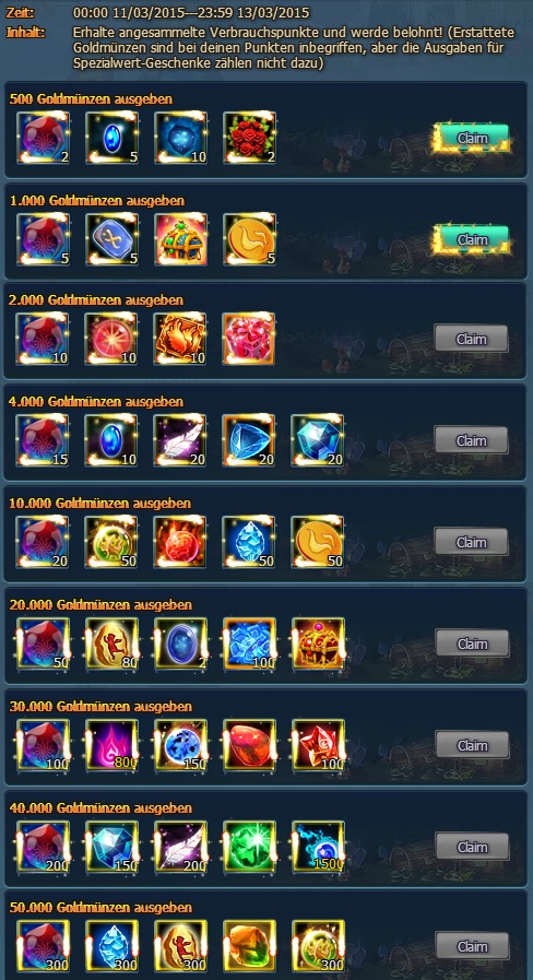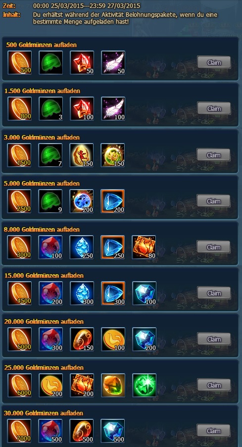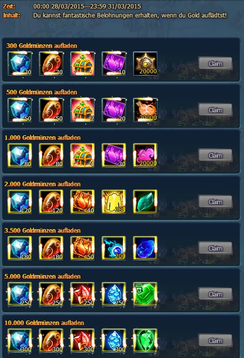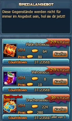 Verschiedene Extrapakete sind im Sonderangebot vom 25.3. bis 31.3. Schaut jeden Tag rein, welches Angebot euch am besten zusagt. Wertvolle Gegenst?nde sind im Angebot