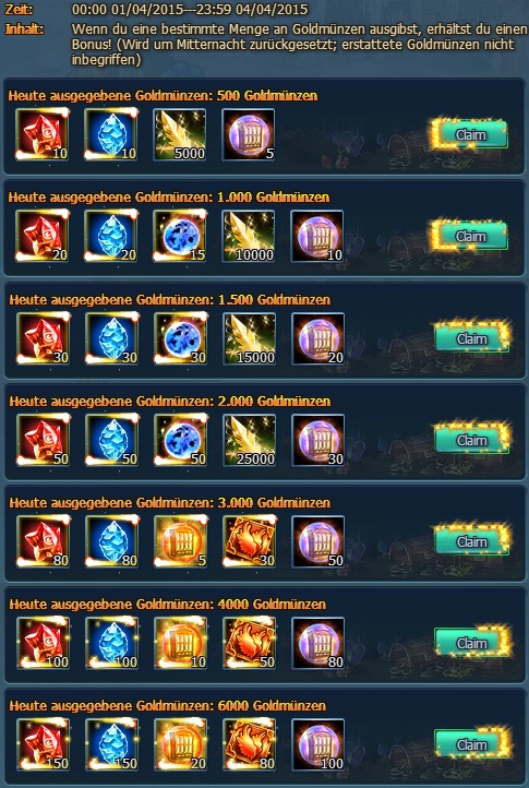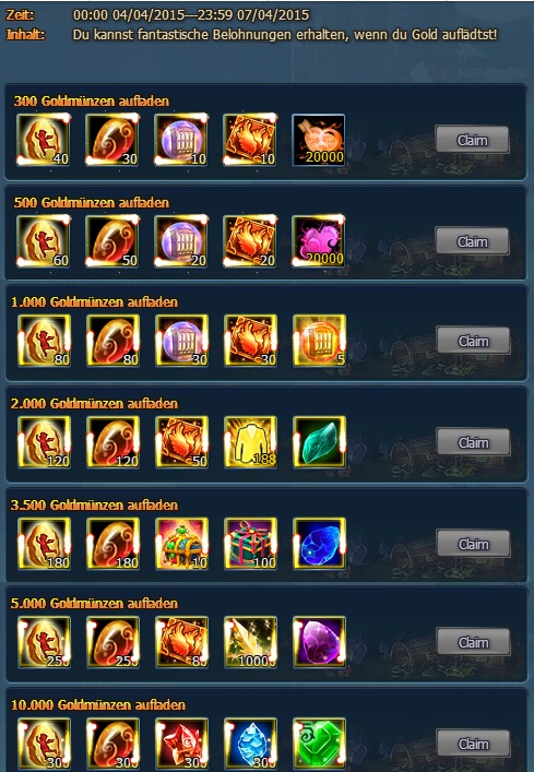 Verschiedene Extrapakete sind im Sonderangebot vom 1.4. bis 7.4. Schaut jeden Tag rein, welches Angebot euch am besten zusagt. Wertvolle Gegenst?nde sind im Angebot