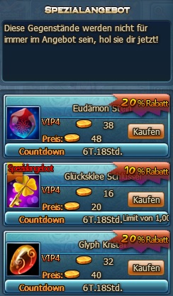 Verschiedene Extrapakete sind im Sonderangebot vom 8.4. bis 14.4. Schaut jeden Tag rein, welches Angebot euch am besten zusagt. Wertvolle Gegenst?nde sind im Angebot