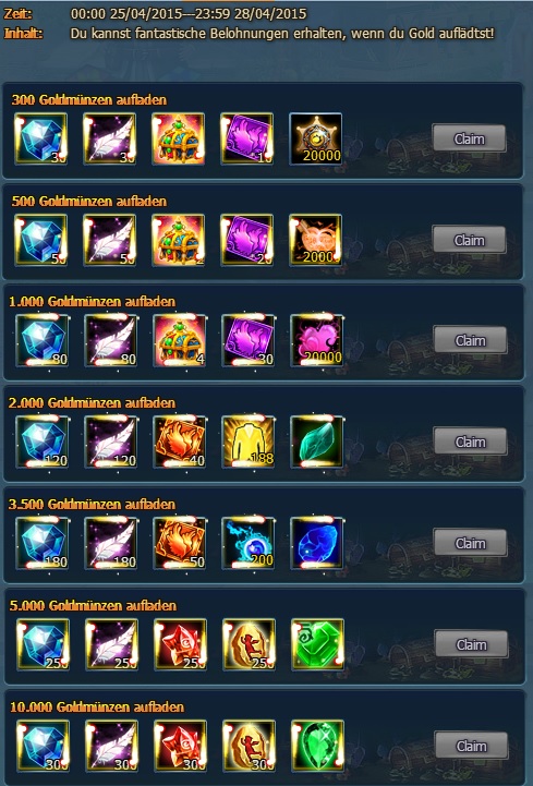 Verschiedene Extrapakete sind im Sonderangebot vom 22.4. bis 28.4. Schaut jeden Tag rein, welches Angebot euch am besten zusagt. Wertvolle Gegenst?nde sind im Angebot