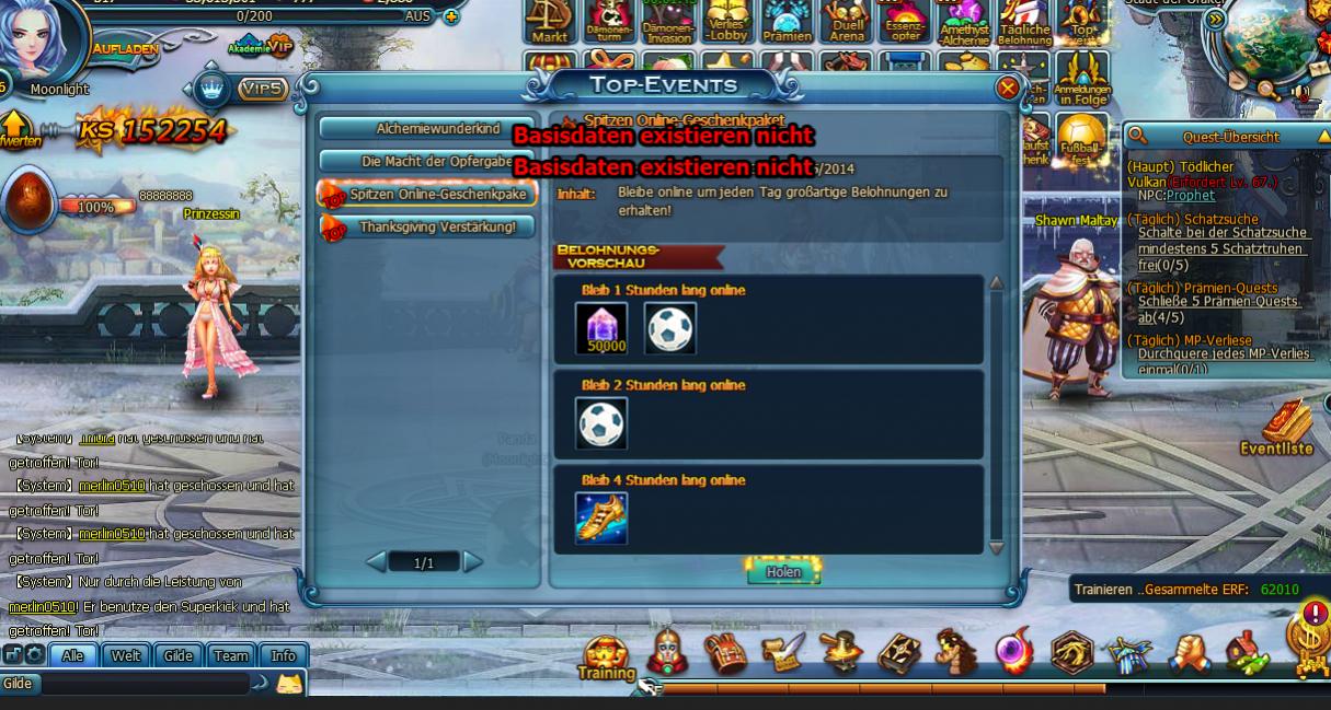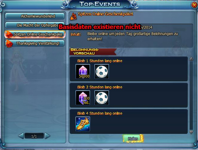 Auch heute noch das gleiche auf allen Servern,,,(S2, S3,S13, S18....) Online-Geschenke kann man nicht holen, da die Basisdaten nicht verf?gbar sind....sollte so ein Problem nicht z?gug repariert werden, da es alle Spieler betrifft und gerade die Leute, die nicht viel investieren k?nnen, leer ausgehen l?sst?Damkina , S3