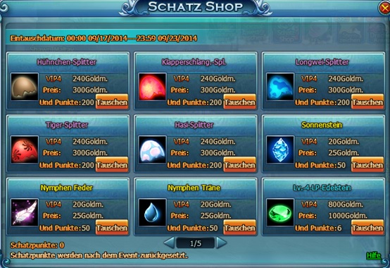 Inhalt: Einige Pakete wie das 199 Gold Paket und das Super Geschenkpaket werden im Shop angeboten.
