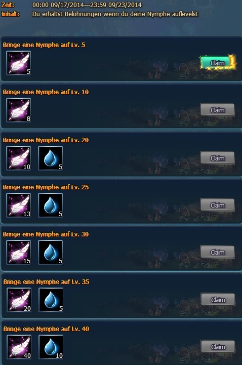 Inhalt: Du erh?ltst Belohnungen wenn du deine Nymphe auflevelst.