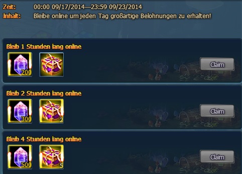 Inhalt: Bleibe online um jeden Tag gro?artige Belohnungen zu erhalten!