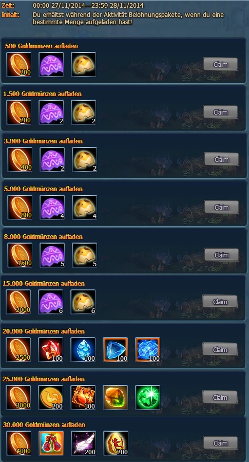 Inhalt: Verschiedene Extrapakete sind im Sonderangebot vom 26.11. bis 2.12. Schaut jeden Tag rein, welches Angebot euch am besten zusagt. Wertvolle Gegenst?nde sind im Angebot.