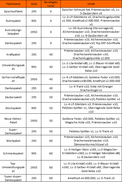 Tipp: Du kannst die Pakete nur nacheinander kaufen, z.B. wenn du das Ruhmpaket willst, muss du zuerst das Epische Paket kaufen.