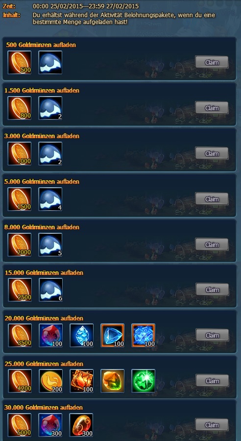 Verschiedene Extrapakete sind im Sonderangebot vom 25.2. bis 3.3. Schaut jeden Tag rein, welches Angebot euch am besten zusagt. Wertvolle Gegenst?nde sind im Angebot