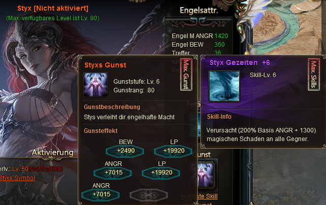 Augenscheinlich ist Styx st?rker als Vienna. Gehe ich aber nun ins Spiel und schaue mir die aktuellen Werte an bei meinem Charakter bei dem ich beide Engel noch nicht besitze und die Werte nur vom ?gis beeinflusst werden schaut es so aus: