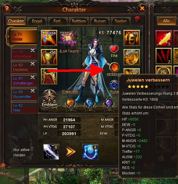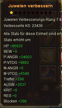Die Juwelen haben feste Werte, beispielsweise Ausweichjuwel (AUSW +490) oder Resistenzjuwel (RES +230). Setze ich nun aber ein Juwel ein erhalte ich mehr als den angegebenen Wert der am Juwel steht.