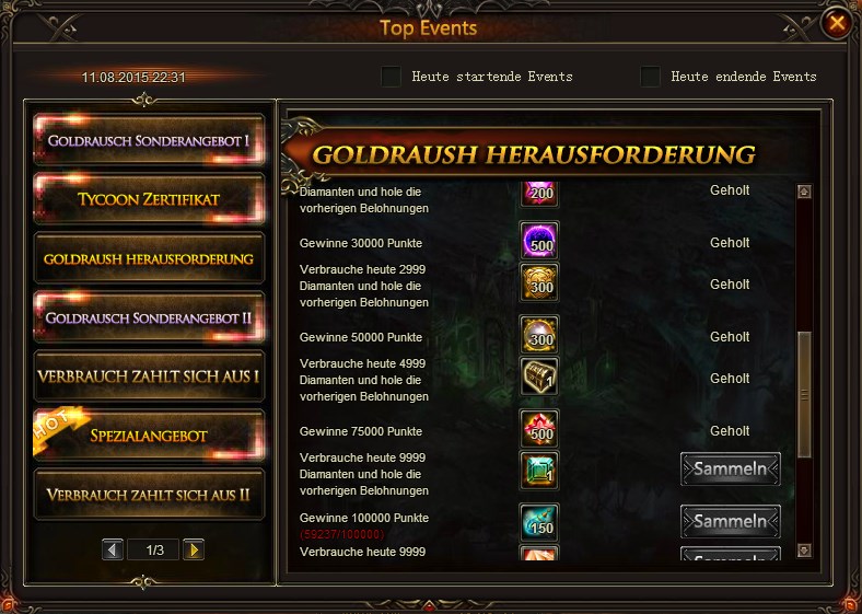 Und Screen 2 vom jetztigen Goldrausch, also die beiden screens haben nichts miteinander zutun.