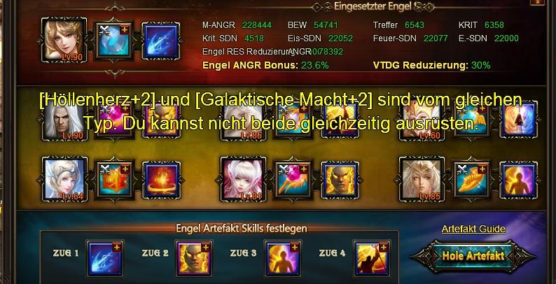Mag ja alles richtig sein - ein guter Support w?rde das aber wieder zur?cktauschen. Da es hier aber keinen gibt oder wenn dann nur auf Baumschulniveau ist und bleibt es halt mal wieder ein negatives Spielerlebnis....Zitat von R288198401 Beitrag anzeigenNa ja wenn man auf das Fragezeichen klickt steht bei der Erkl?rung da das man Artefakte gleicher art nur einmal setzen kann.Beide machen jeweils engelsschaden...nunja...K?nnte bei der Erkl?rung an der kiste dranstehen ja, das w?re sicher nett aber dahingehend m?sste gt was machen da nunmal alles von denen kommt und r2 das nunmal nur ?bernimmt.Allianzlos in LOA 15.05.2015 - 12.06.2015