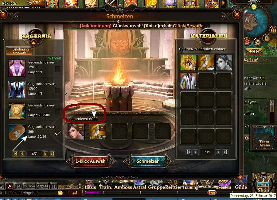 Turmkarten kosten 300 pro St?ck wenn ich sie haben m?chte. Habe 6000 Punkte zum schmelzen. Beim letzten Mal bekam ich anstatt 20 St?ck (20 x 300= 6000 Punkte) nur 19 Karten. Habe nix gesagt weil ich keinen Screenshot hatte. Und ohne diesen geht es anscheinen hier nirgendwo mehr