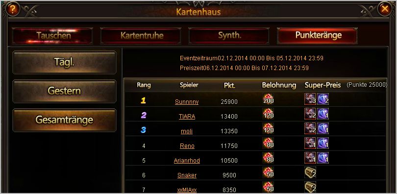 find schade das man support anschreibt, nie ne antwort erh?lt. mein problem is das kartenhaus war auf dem 2 paltz doch wo sind die belohnungen? ausser seraphsteine, hab nix bekommen, die karten nich den stein nich,daf?r steckt man geld rein find sehr schade. was kann man tun wenn support nich antwortet , man schreibt sich die finger wund, aber wenn bug is ,schreibt man sie an reagieren sie sofort. vielleicht antwortet mir ja hier jemand
