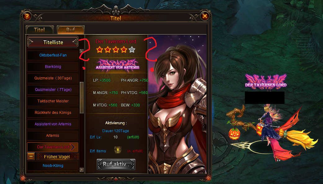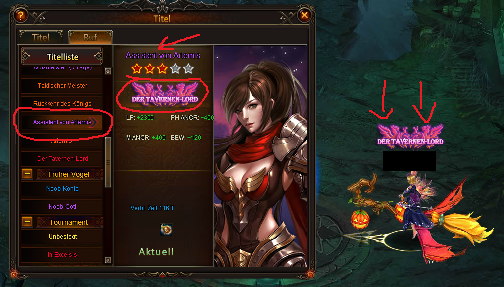 Beim aktivieren des Rufes "Assistent von Artemis" wird komischerweise "Der Tavernen-Lord" ?ber dem Charakter angezeigt.
