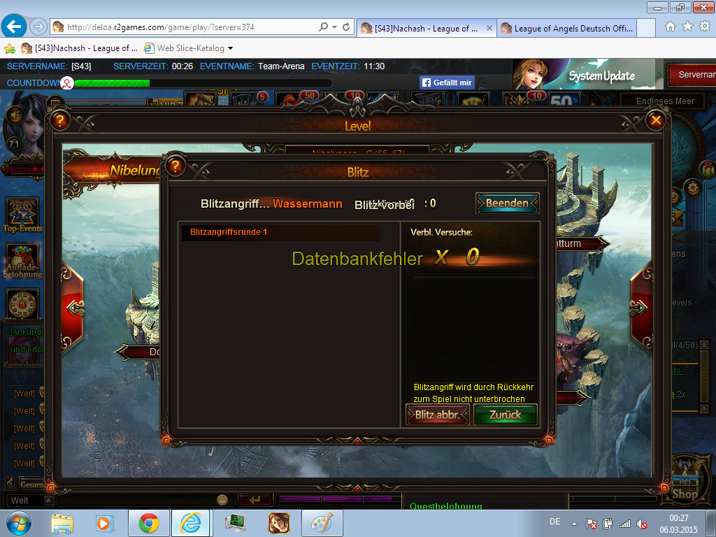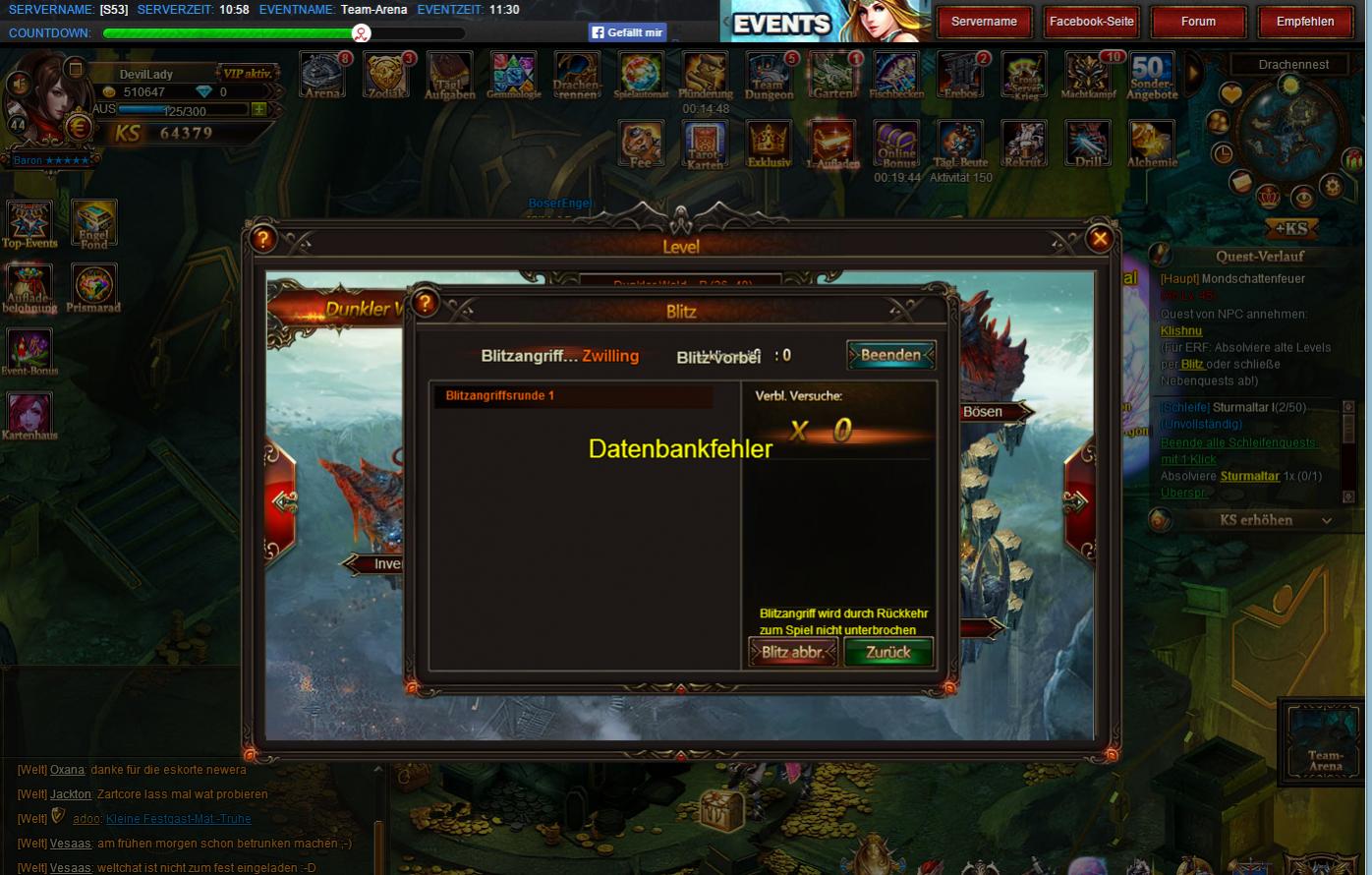 Brauche Hilfe und Rat. Habe heute - so wie immer - den Zodiak geblitzt und dann kam pl?tzlich die Meldung "Datenbankfehler". Jetzt l?sst sich das Teil wieder durch ausloggen, relog oder abbrechen beenden.