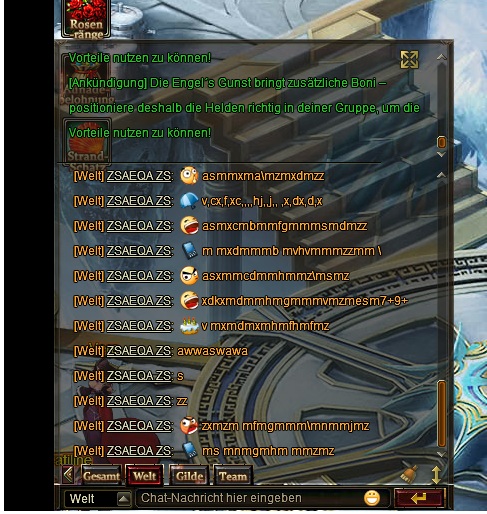 sondern, spammt nur den Chat voll und st?rt das ganze Spiel. Wenn man nicht schreiben kann, einfach mal sein lassen!