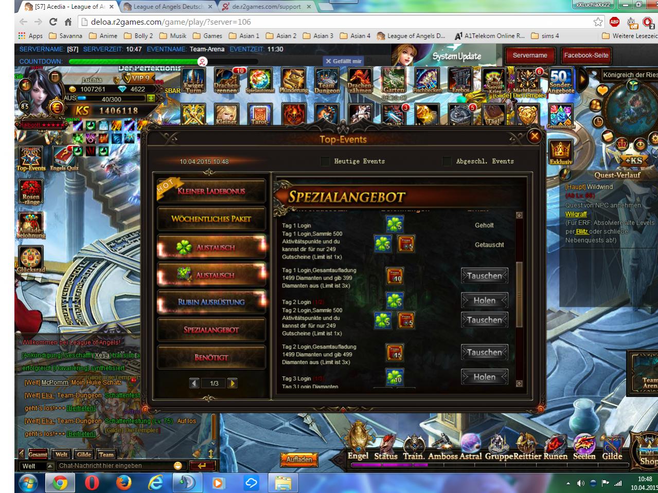 Sorry aber k?nnt ihr euch bitte endlich darum k?mmern kann doch nicht sein dass man soviel Geld f?r ein spiel aus gibt und st?ndig irgendwelche Probleme sind. Auch wenn Ihr viel zu tun habt, steht dieses Event an erster Stelle denn Bugs mit R?stungen oder Veredelung ist immer da aber dass Event endet auch mal, also Bitte k?mmert euch darum