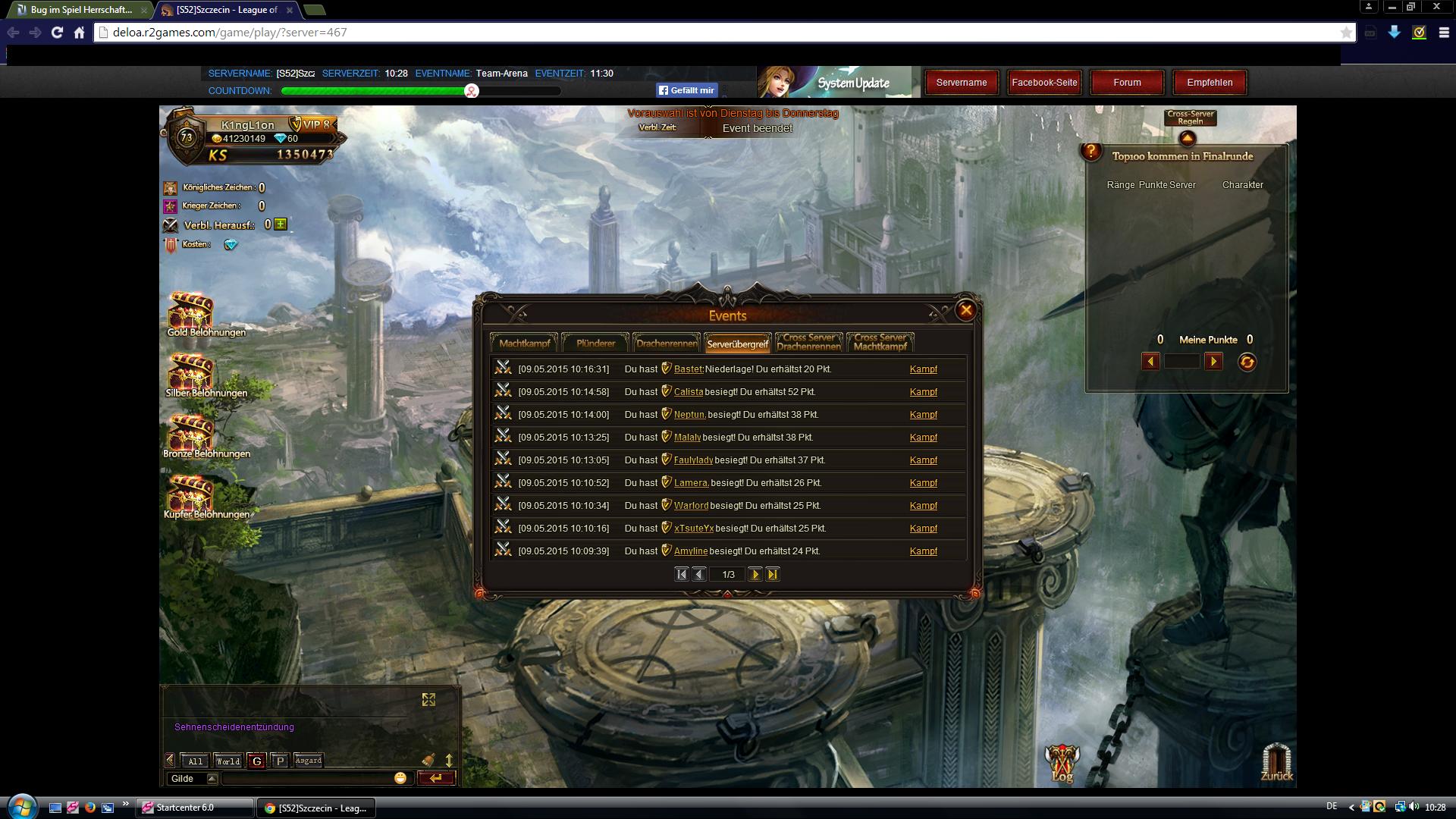 bei mir siehts genauso aus, dass ich keine gegner vor mir habe! und leider sind wieder nur einzelne betroffen also wieder vorteil f?r die, wo es klappt und nachteil bei denen es nicht klappt. da dies auch wieder an einem wochenende geschieht, k?nnen alle betroffenen sich diese herrschaft ja wohl abschminken. Wiedergutmachung, die es f?r alle gibt braucht ihr auch nicht ausgeben, weil damit wird der nachteil auch nicht ausgeglichen. und bekommt endlich die laggs in den griff. so langsam macht es echt keinen spa? mehr.