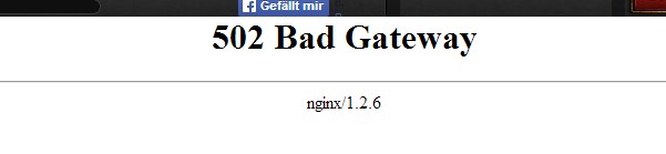 Der Server ist nicht down. was ihr da f?r ein Problem habt, kann ich euch aber leider auch nicht sagen. Der Punkt ist Rot wenn R2 den Server abgeschalten h?tte, aber er ist ja gr?n. Muss dazu sagen, ich hab gerade versucht auf den Server zu kommen aber auch bei mir stand ,,502 Bad Gateway,, F?r euch tus mir echt leid und hoffe das ihr schnell wieder auf euren Server drauf k?nnt