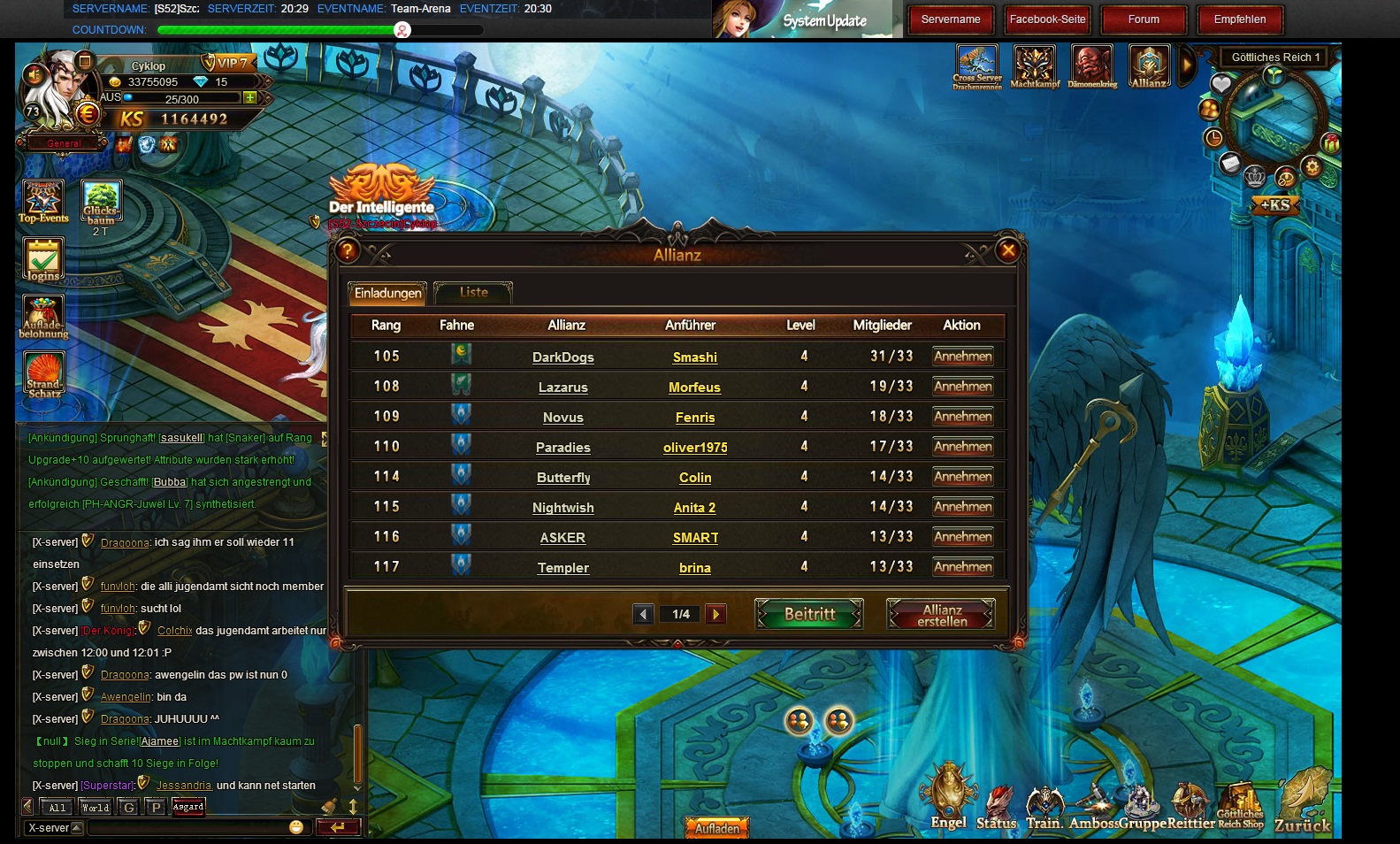 1. Allianzen sind jetzt total verbuggt mal wieder 90% aller Spieler sind zwar laut Allianzliste noch in der Allianz, aber sobald man Allianzfenster aufruft kommt das.