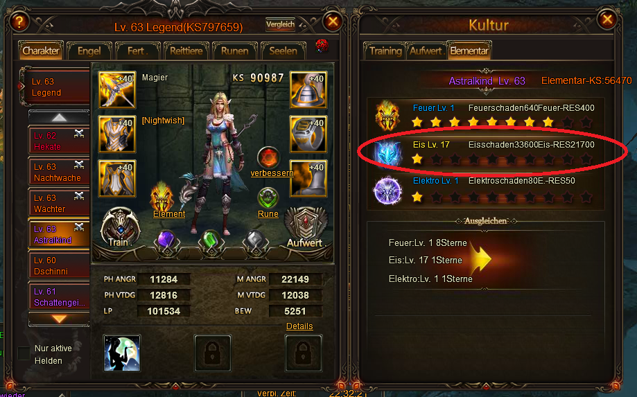 Ich w?rde gern mal erfahren wie es m?glich ist dass auf Server 55 (Mokosh) das Astralkind von dem Spieler Legend, beim Elementarverbessern folgende Stats haben kann: