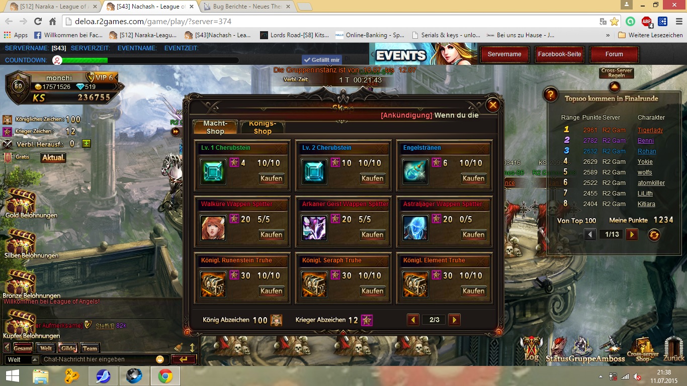 hallo, hab mir gerade im cross shop (herrschaft), 5* den astralj?ger wappen gekauft. wird mir nur nicht in meiner tasche angezeigt. hab von dem astralj?ger schon 8 splitter in meiner tasche, somit m??ten es ja nach meinem kauf 128 splitter sein. sind sie aber nicht. bitte behebt diesen fehler.