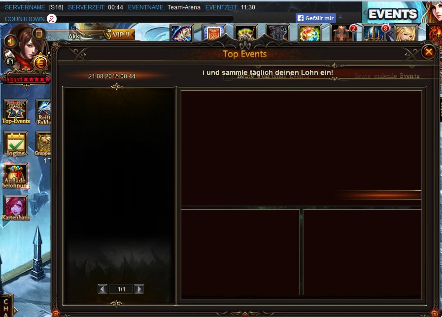 Ich hoffe das ich helfe denn im Top Event Bereiche sind keine Events drin ,kann das ein Bug sein ??? wenn ja dann bitte ich sie das sie sich darum k?mmern. Mfg Nihal