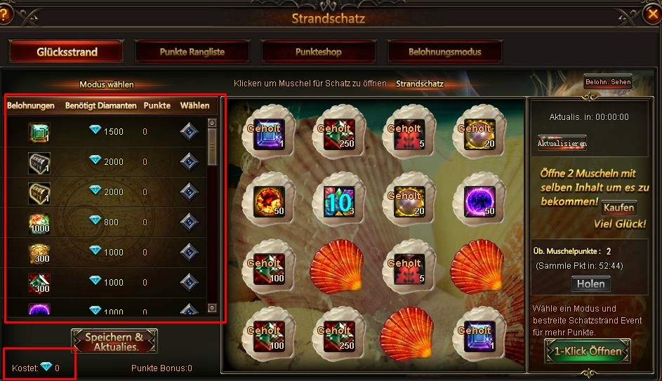 kann den Strandschatz nur mit 500 Dias. aktualisieren und das vom Anfang an