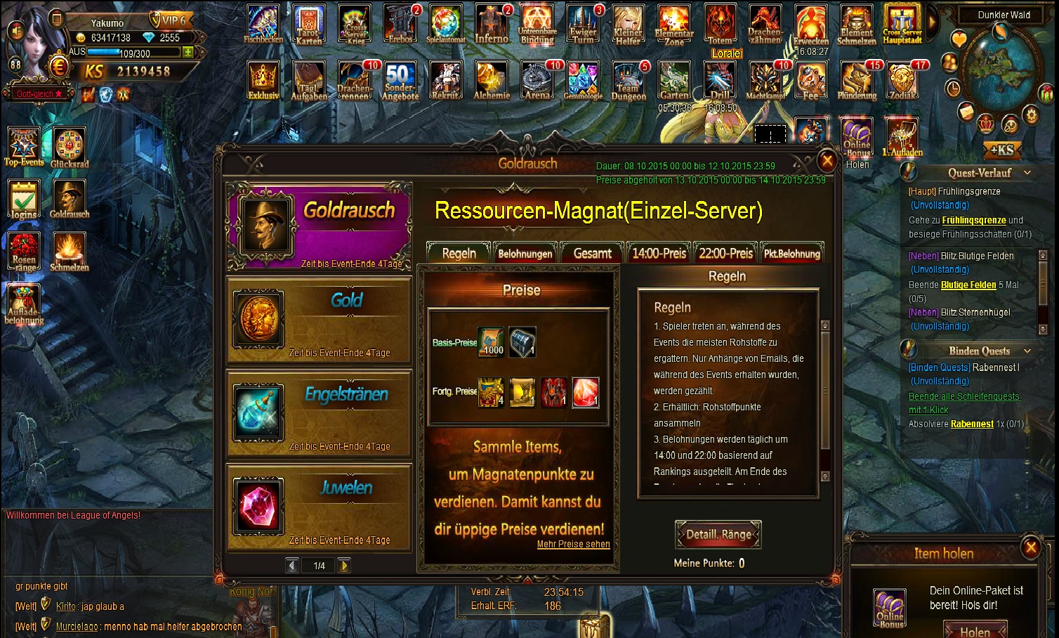 Beim Goldrausch werden keine Punkte gez?hlt. Kleiner Helfer durchgelaufen aber der Punktestand ist bei 0. Wie man sieht ist das Schleifenquest schon durch.