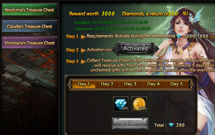 spend allready 1000 Dias for Treasure yesterday and can?t get any Reward.