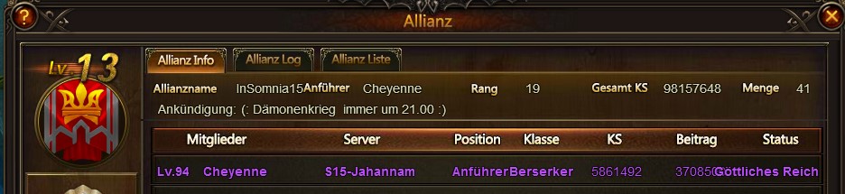 W?re sch?n, wenn die Geisterallianzen beseitigt werden w?rden (und die Leader ihre 200 Diamanten wiederbekommen). Zumal es Schade w?re, wenn neugegr?ndete Allianz aufgrund der KS (die bei vielen Geisterallianzen h?her ist) nicht teilnehmen k?nnen.