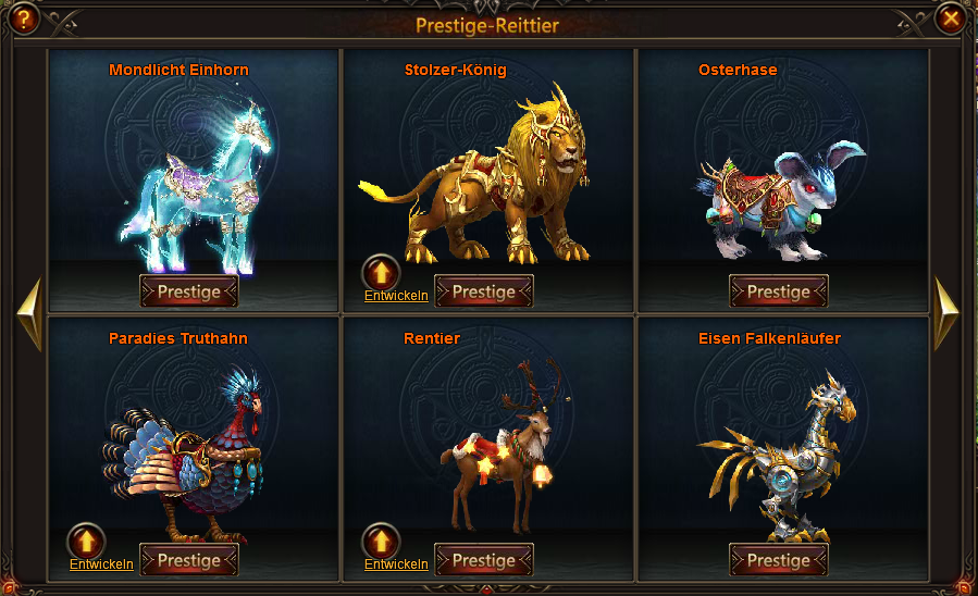 aber mir ist z.B. bei Untrennbare Bindung aufgefallen das Glamour Einhorn nicht als freigegeben angezeigt wird oder auch bei Reittiere Prestige selbst erscheint es nirgends.