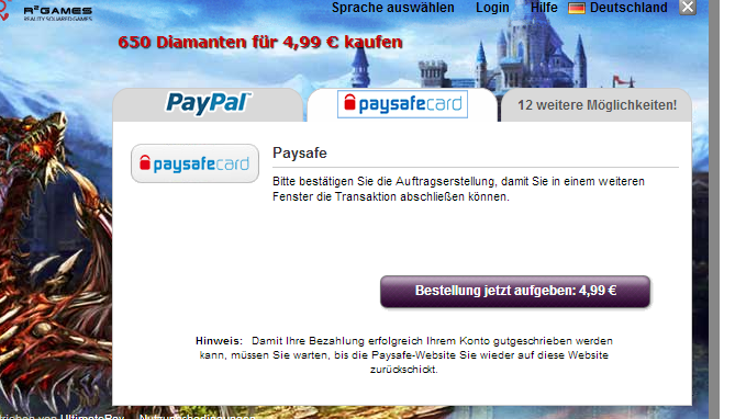 Bezahlung per Paysafecard