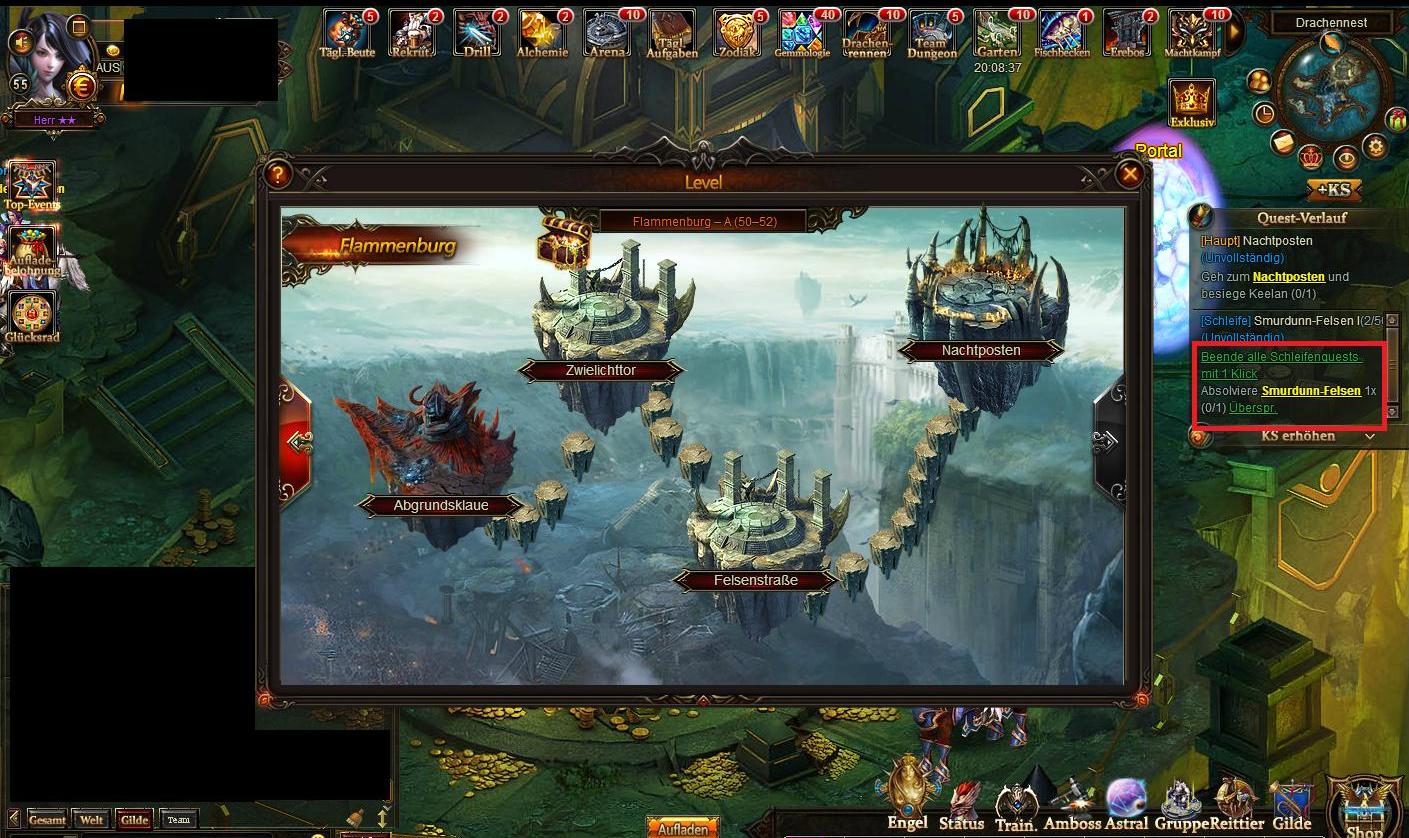 Nur zur Info: sowohl Morgan-Tal als auch Smurdunn-Felsen befinden sich in Flammenburg B (Level 53-55). Die Schleife geht davon aus, dass du das mit Level 55 komplett freigeschaltet hast.