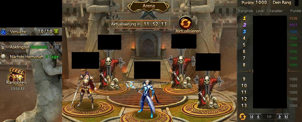 Nach einer Herrrschaft gab es doch immer einen zus?tzlichen Reset der Leute in der Arena, damit zumindest zu Anfang alle die gleichen Chancen f?r die n?chste Herrschaft haben. Nun...bei mir ist zur Zeit (gestern Herrschaft) dieses Bild zu sehen: