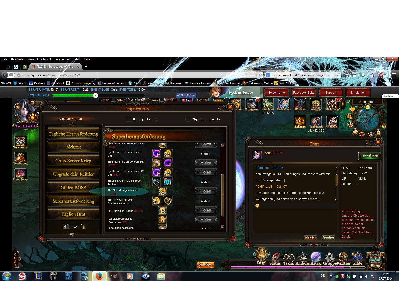 hier bei eurer Event Aufgabe bleibt die Anzeige bei 10/100 stehn obwohl man mehrfach den Engel gebunden hat w?re sehr sch?n wenn ihr das beheben k?nntet hab das schon sicherlich 3 tage lang gemacht und immer wieder stand die Anzeige bei 10 fest.