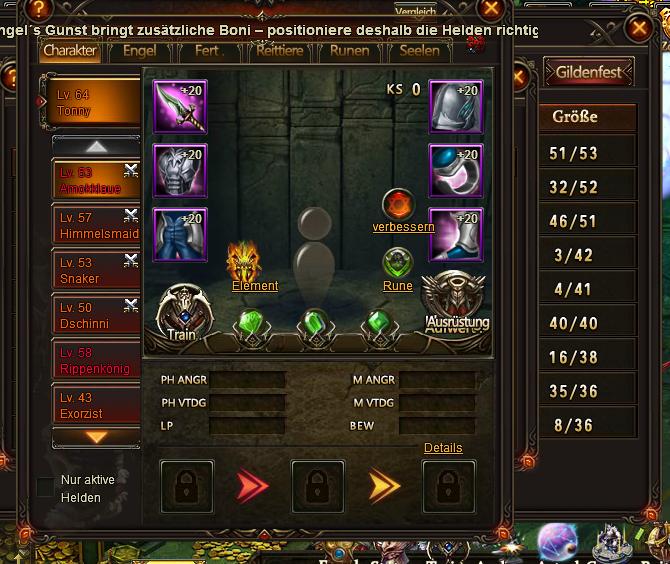 Ich vermute bzw. bin davon ?berzeugt dass du die Bugprobleme erst seit dem du den Rippenk?nig rekrutiert hast.Unter Engelschutz wirst mir immer mit dem gleichen lvl. wie der rippenk?nnig angezeigt.Da du fr?her den hochgelevelt hattest,war automatisch auch dein lvl. genauso hoch wie der dein heldens angezeigt.Brauchste mich nicht zu danken habs gerne getan=) fg Edwin