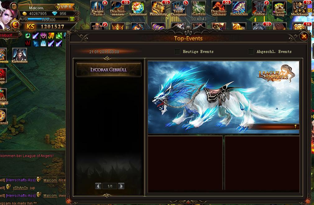 edit: im ?brigen is das hauptproblem, das viele Top-Events t?gliche Aktivit?ten voraussetzen, Schleife, Arena, Zodiak, etc. ; was glaubst, wie da die H?lle los ist, wenn das System hinter dem Spiel, gemachte Aktivit?ten denn f?r die Top-Events nicht wertet (gabs schon oft genug) , deswegen hab ich das auch so fr?hzeitig gepostet und nicht erstmal abgewartet, viele Spieler machen den ganzen t?glichen Kram, wie ich auch, eben direkt nach 0 Uhr.Zuletzt geändert von R296074365; 21.01.2015, 01:45.Alle Angaben ohne Gewähr.